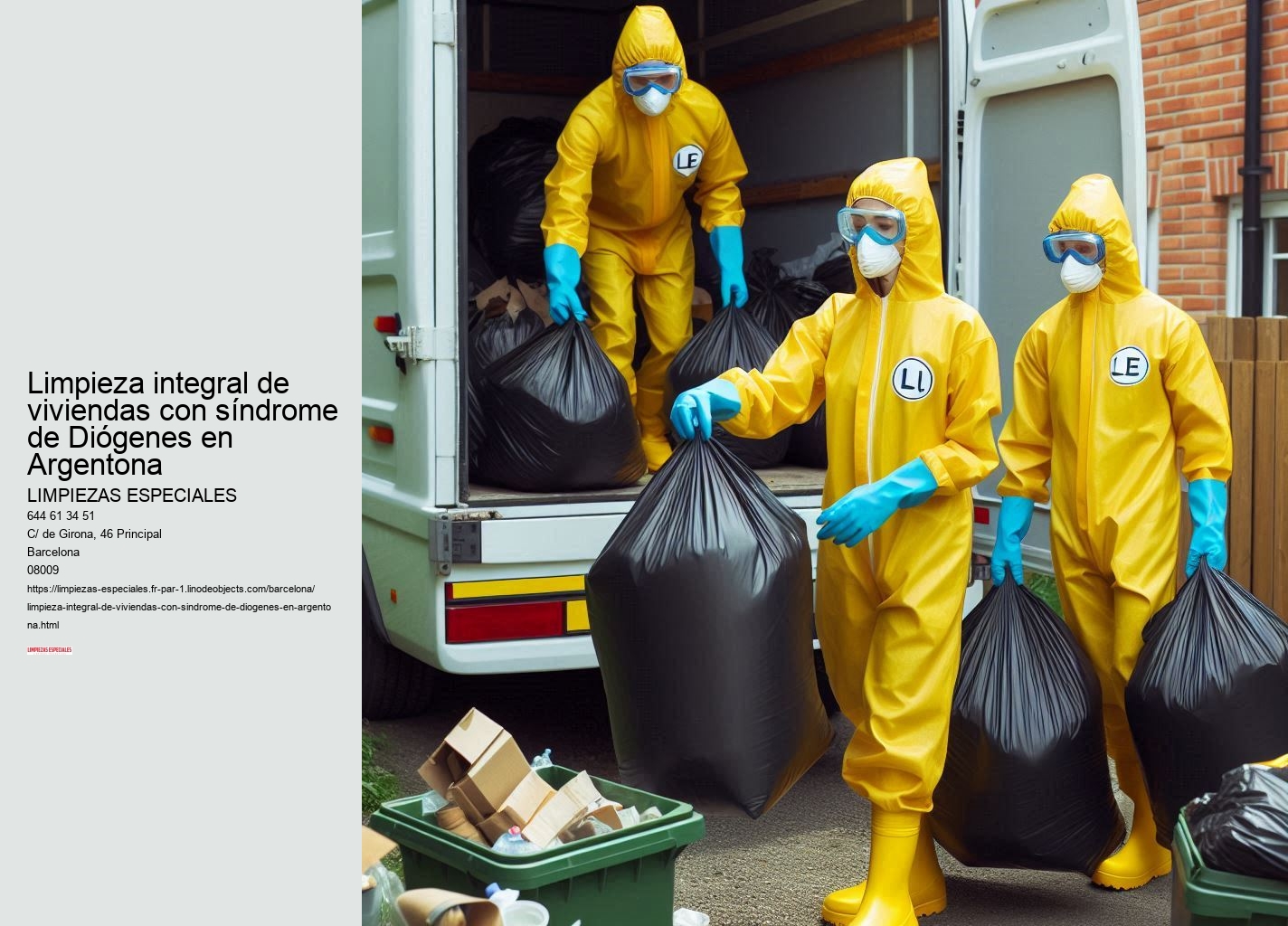 En Limpiezas Especiales Argentona, comprendemos la gravedad y complejidad del síndrome de Diógenes. Sabemos que enfrentar una situación de acumulación extrema puede ser abrumador y emocionalmente agotador. Nuestro objetivo es ofrecer la solución profesional y humana que necesita para devolver la habitabilidad y seguridad a su hogar. Con años de experiencia y un equipo altamente capacitado, estamos preparados para abordar cualquier desafío de limpieza, garantizando resultados excepcionales y una atención personalizada.