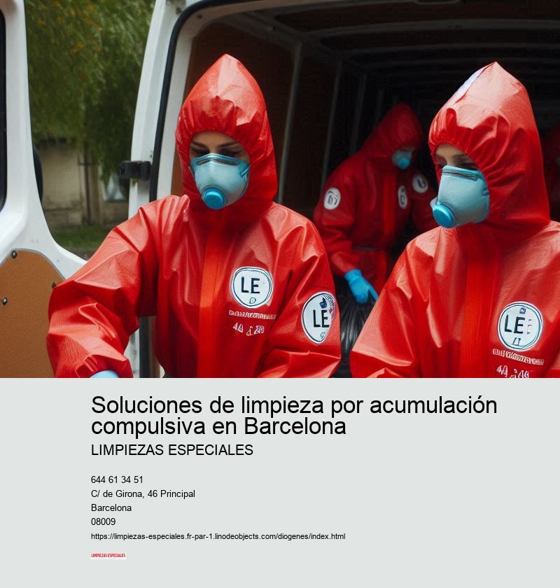 Proporcionamos consultas sin compromiso y asesoramiento sobre servicios sociales adicionales. Empresa experta en Soluciones de limpieza por acumulación compulsiva en Barcelona Garantizado 100% Esto incluye orientación sobre recursos disponibles para ayudar a las personas afectadas.