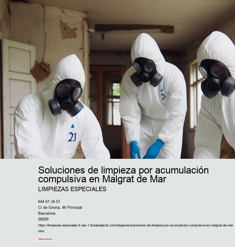 En Limpiezas Especiales Malgrat de Mar, comprendemos la gravedad y complejidad del síndrome de Diógenes. Mejor opción para la Soluciones de limpieza por acumulación compulsiva en Malgrat de Mar !LLAMA AHORA¡ Sabemos que enfrentar una situación de acumulación extrema puede ser abrumador y emocionalmente agotador. Nuestro objetivo es ofrecer la solución profesional y humana que necesita para devolver la habitabilidad y seguridad a su hogar.